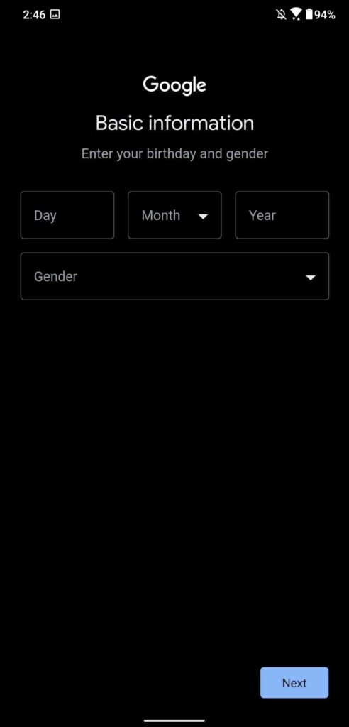 **स्टेप 6: जन्म तिथि और लिंग चुनें**
